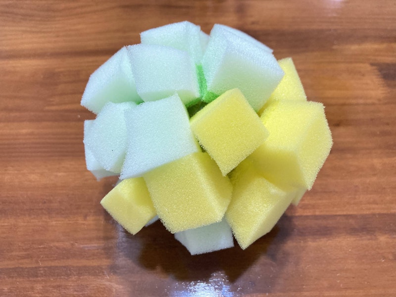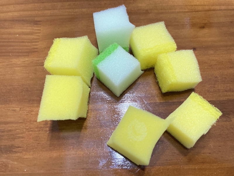 2. スポンジを2-3cmの角切りにします。