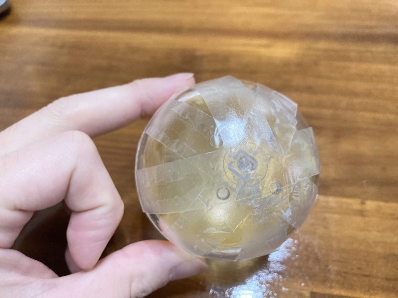 1. がちゃがちゃの空容器に、両面テープをぐるぐる巻にします